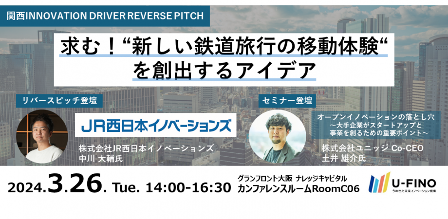 うめきた未来イノベーション機構(U-FINO)様とともに、新たな収益の柱構築に向けた価値創出やオープンイノベーションを実現するため、リバースピッチイベントを開催しました。