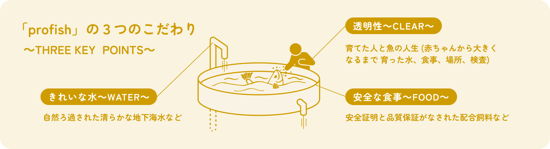 選び抜かれた「PRO(プロ)」魚であることから「プロフィッシュ」と名付けました。