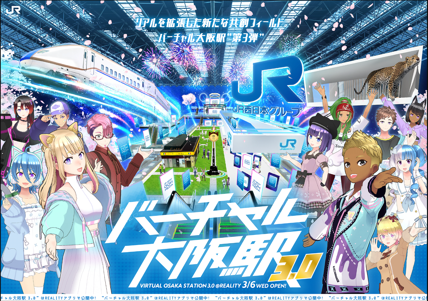 「バーチャル大阪駅 3.0」は、前回と同じく、世界中で累計1,500万ダウンロードを突破したスマートフォン向けメタバース「REALITY」で構築します。
