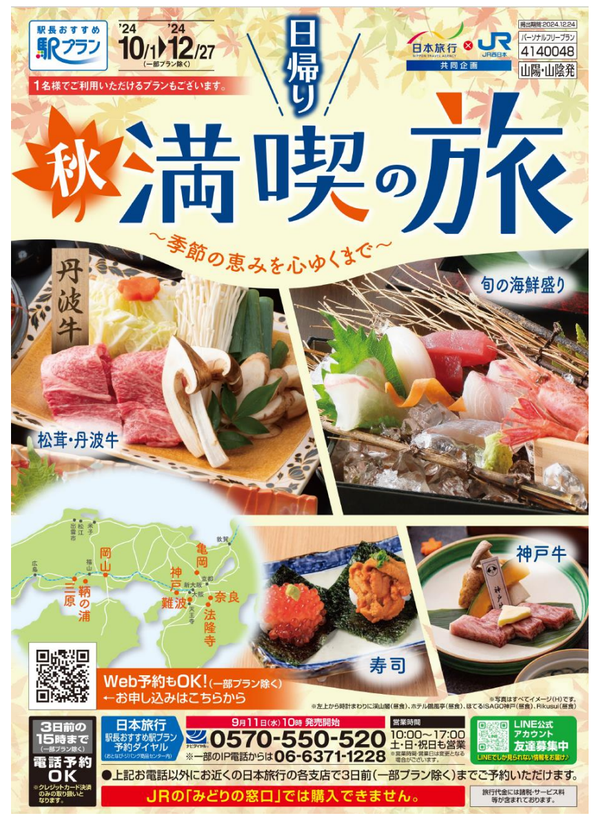 詳しくは日本旅行ホームページ内のデジタルパンフレット「秋の満喫の旅」をご確認ください。
