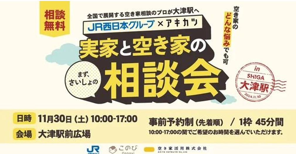 実家と空き家の相談会in大津駅【11/30(土)開催】 空き家相談のプロが、お困りごと解決に全力でサポートいたします!