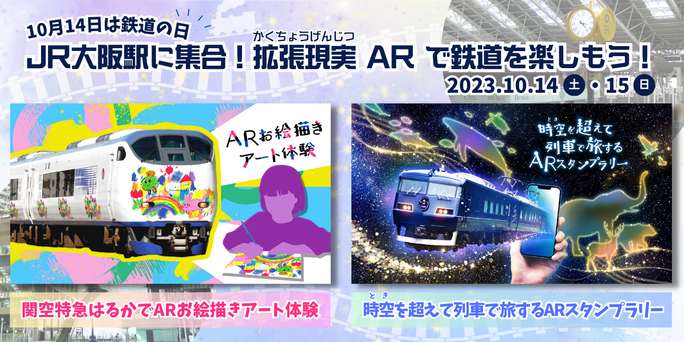 西日本旅客鉄道株式会社、株式会社JR西日本コミュニケーションズ、株式会社JR西日本イノベーションズ、株式会社Psychic VR Lab は、JR大阪駅・大阪ステーションシティ5F「時空(とき)の広場」で現在開催中の「エキウエAUTUMN FEST」の一環として、10月14日(土)および15日(日)に「時空(とき)の広場」や「JR大阪駅うめきた地下口」等の複数エリアで、スマートフォンで拡張現実(AR)体験ができるアプリケーション「STYLY」を使った参加無料のイベント「ARお絵描きアート体験」と「時空を超えて列車で旅するARスタンプラリー」を開催します。
