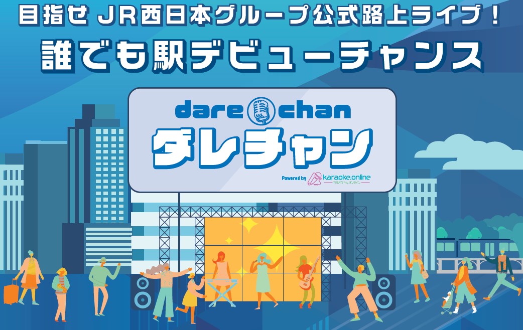 株式会社JR西日本イノベーションズ(本社:大阪府大阪市北区、代表取締役社長:川本 亮)と株式会社ビジュアライズ(本社:東京都渋谷区、代表取締役社長:安達弘明)は、今年5月にJR大阪駅直結の大阪ステーションシティカリヨン広場(以下、OSCカリヨン広場)にて行われるJR西日本グループ公式路上ライブへの出演権をかけたオーディションイベント「目指せ JR西日本グループ公式路上ライブ! 誰でも駅デビューチャンス powered by カラオン」(以下、「ダレチャン」)を実証実験として共同開催します。